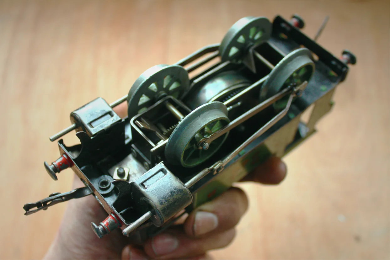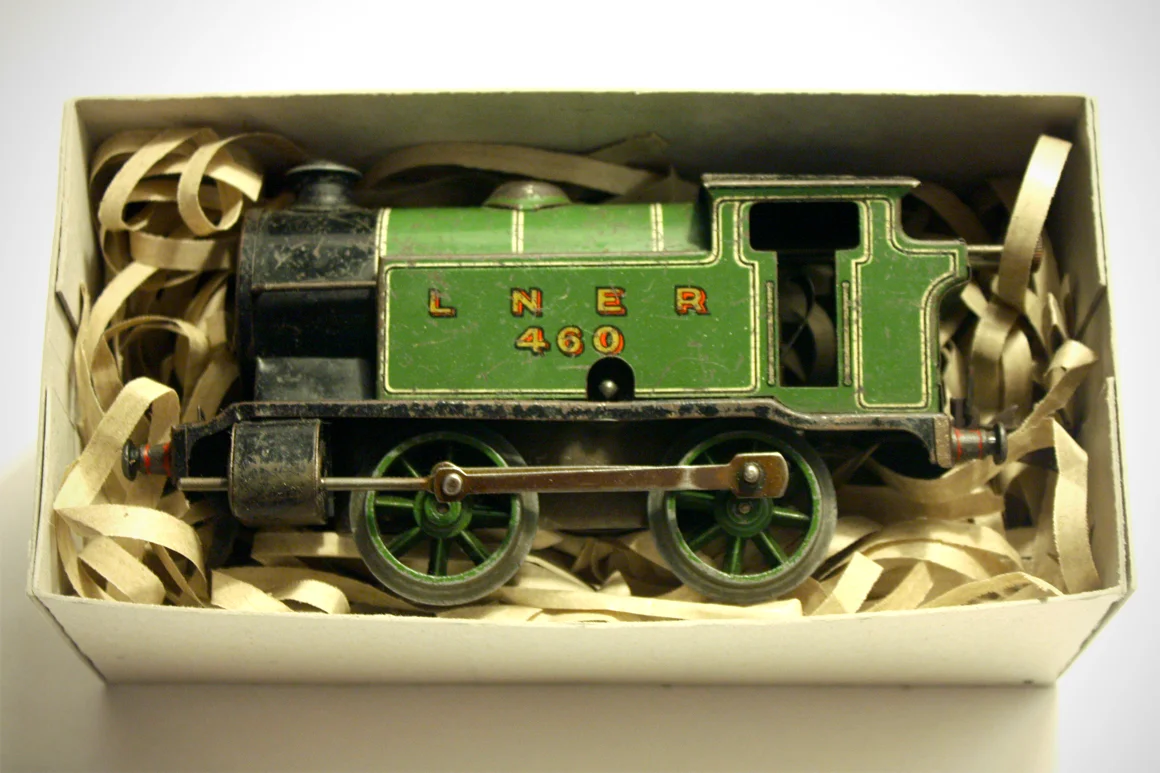 O-Gauge clockwork locomotives hit the scene in 1920, after the success of Meccano had begun to fuel a generation of of tinkerers and backstreet mechanics. A robust and luxurious tinplate construction with a rich stove-enamelled black finish made these the toy of choice throughout England and beyond.